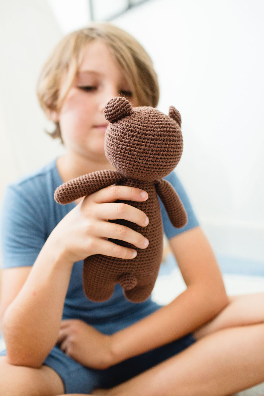 our Sleepover Friend bear! Ready for snuggles and sweet dreams, Berry helps kids sleep soundly anywhere, from grandma's house to camping adventures.