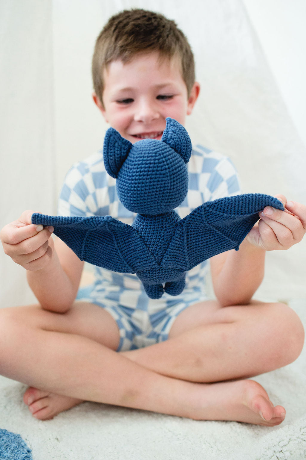 our Sleepover Friend Bat! Ready for snuggles and sweet dreams, Comet helps kids sleep soundly anywhere, from grandma's house to camping adventures.