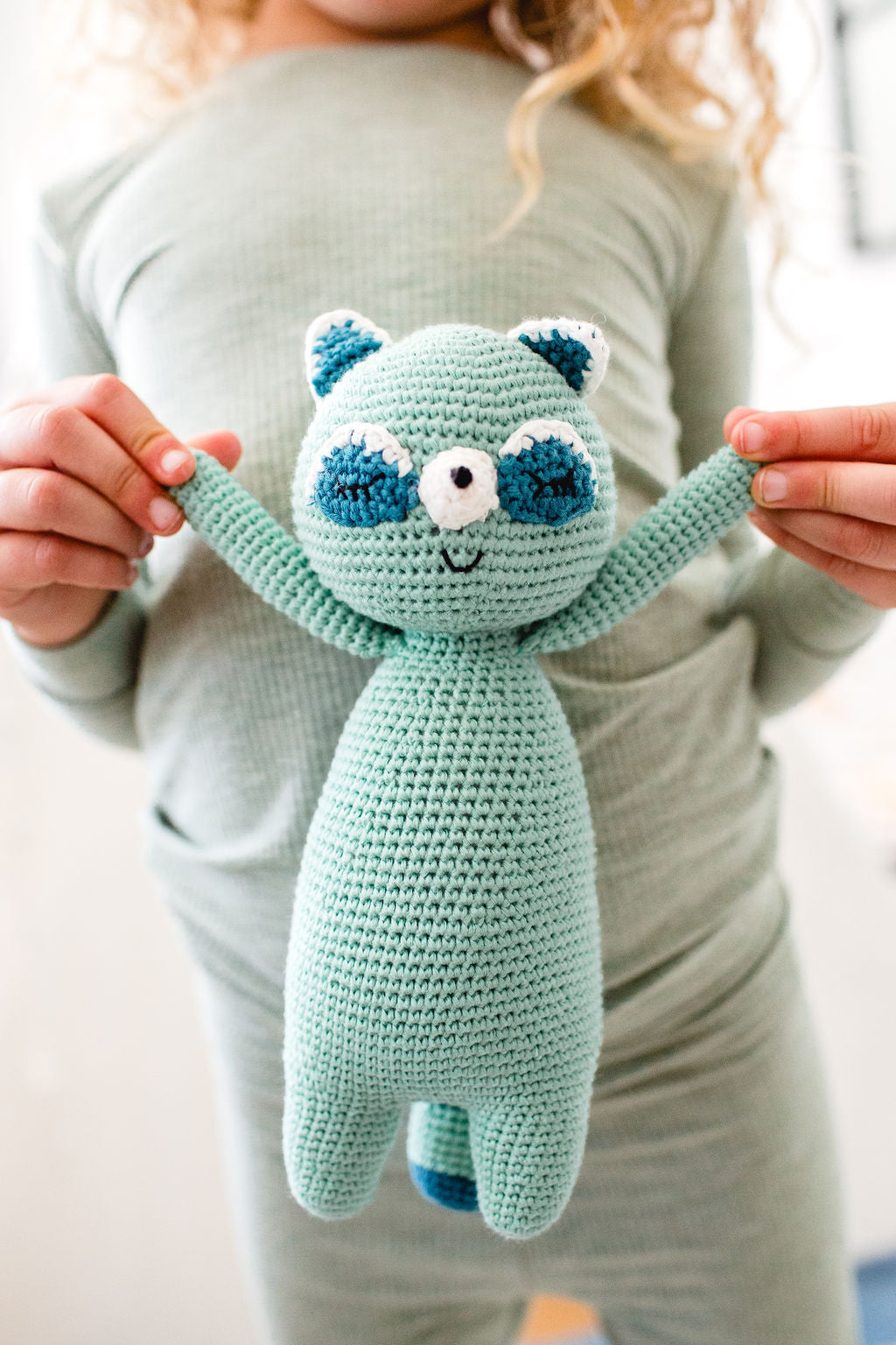 our Sleepover Friend raccoon! Ready for snuggles and sweet dreams, River helps kids sleep soundly anywhere, from grandma's house to camping adventures.