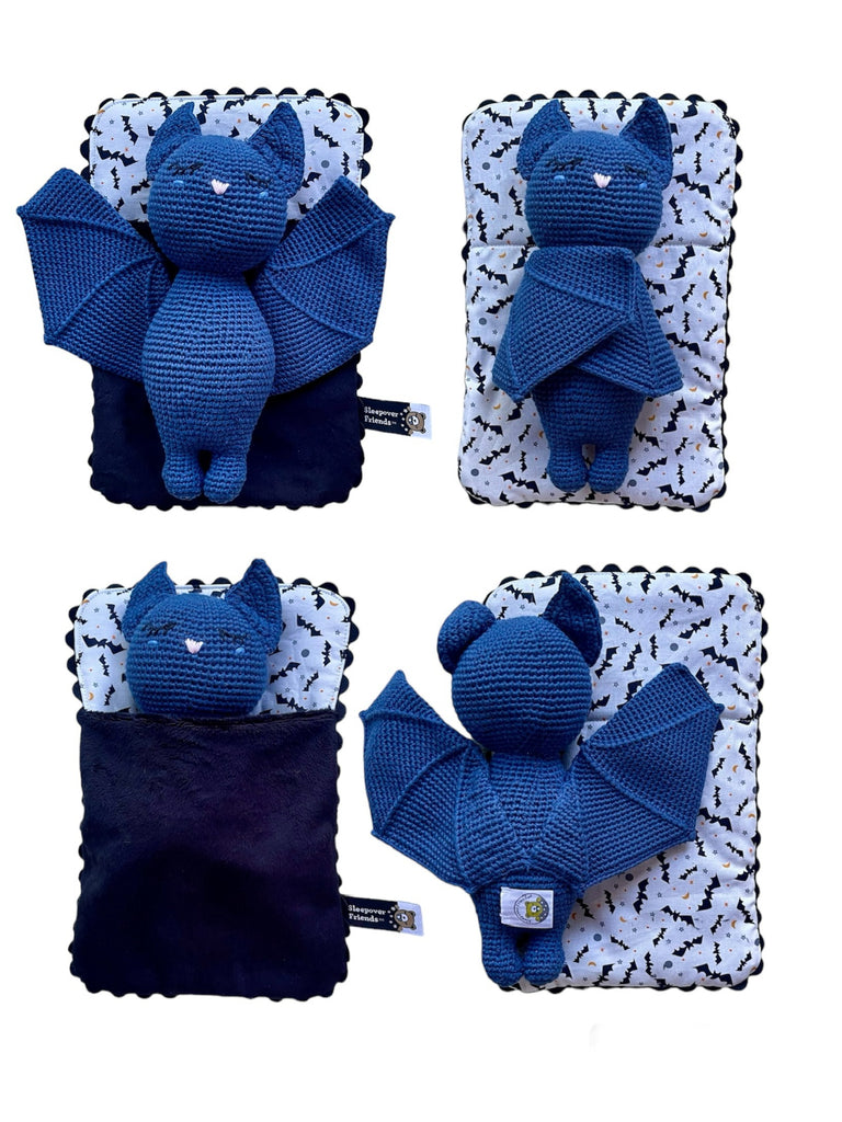 our Sleepover Friend Bat! Ready for snuggles and sweet dreams, Fern helps kids sleep soundly anywhere, from grandma's house to camping adventures.