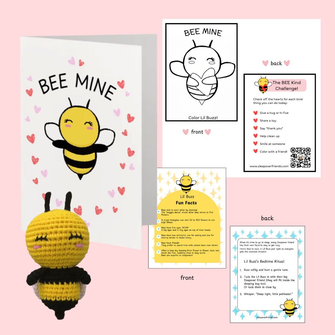 Fun Fact Card! Discover fascinating facts about bees and learn how Lil Buzz likes to be tucked in at night!